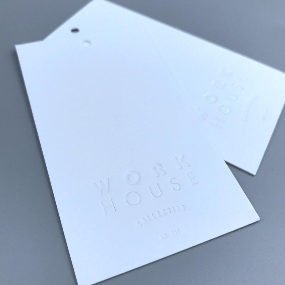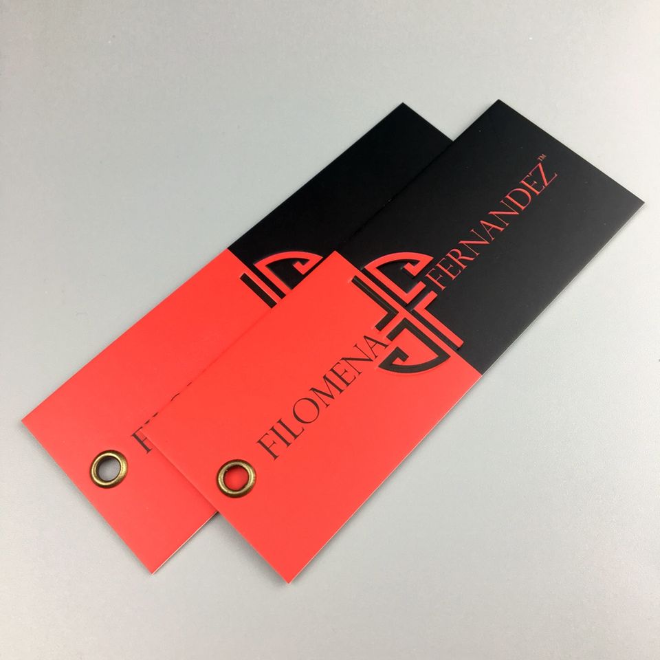 Etiqueta de ropa impresa de papel personalizado, etiqueta colgante en relieve para ropa