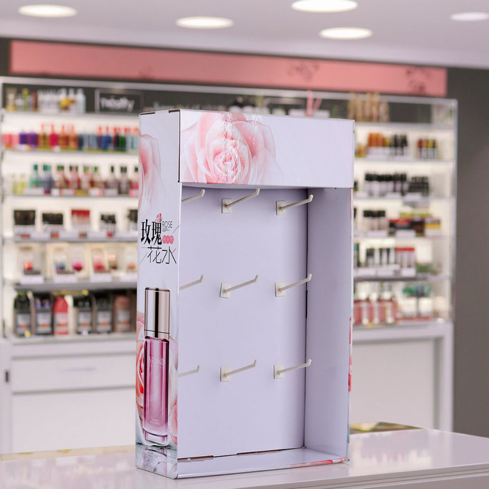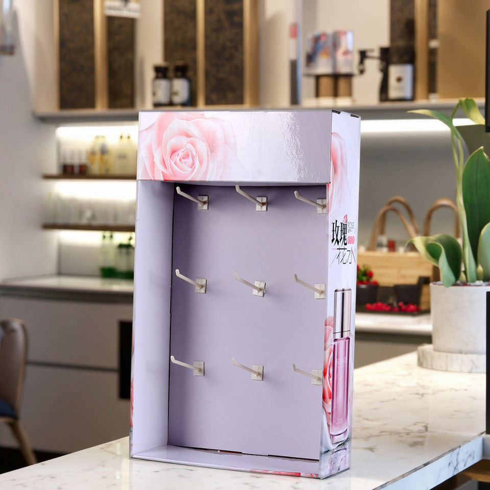 Caja de exhibición de papel reciclado personalizada Cadena de supermercado giratoria tienda encimera cosméticos ropa calcetines ganchos de soporte de promoción