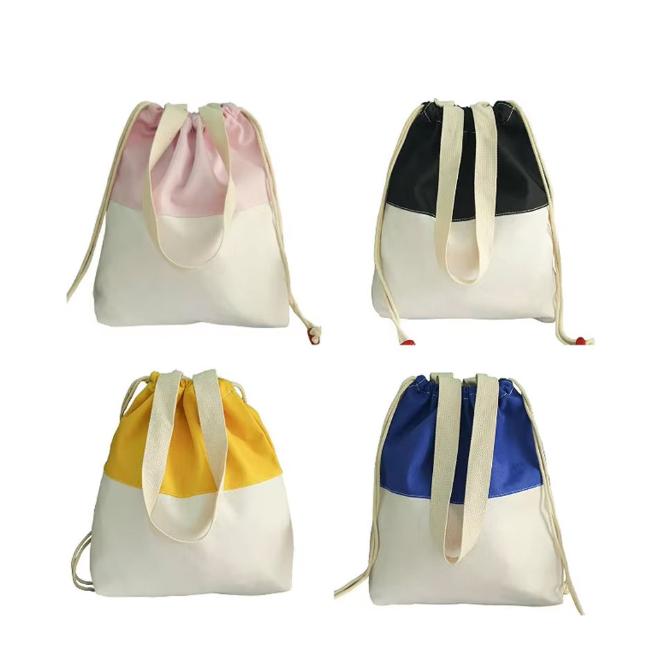 Mochila reutilizable con cordón personalizada, dos colores, mosaico, deportes, promoción de compras, mochila plegable de algodón para niños, mujeres y hombres