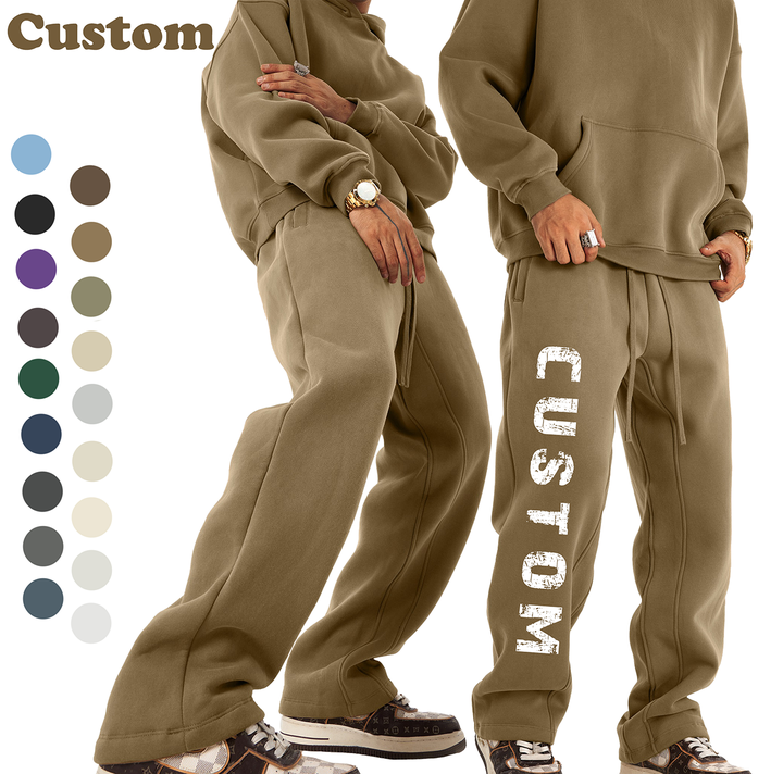 Pantalones Deportivos Holgados de Pierna Recta de Algodón con Forro Polar y Cordón, Color Sólido Personalizado, Pantalones Jogger de Alta Calidad para Hombre