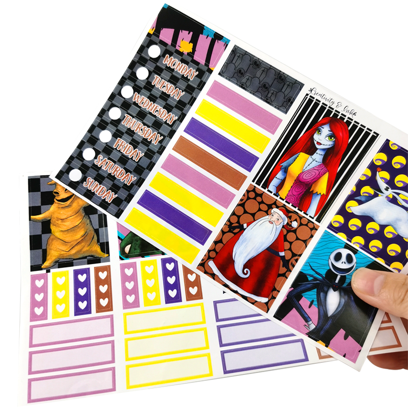 Adesivos de papel graváveis personalizados para colorir em folhas de beijos