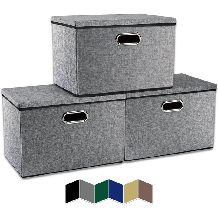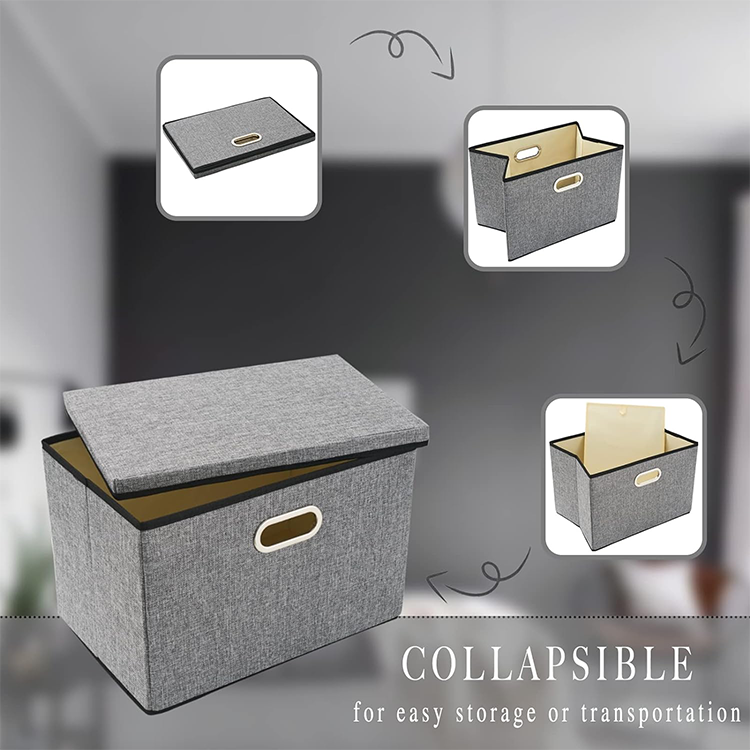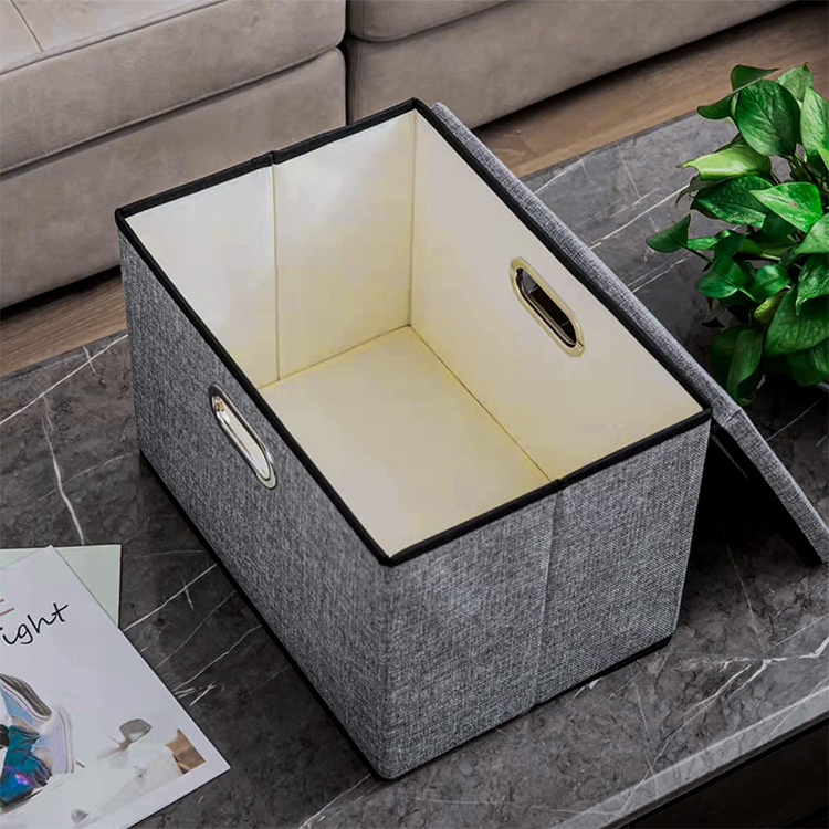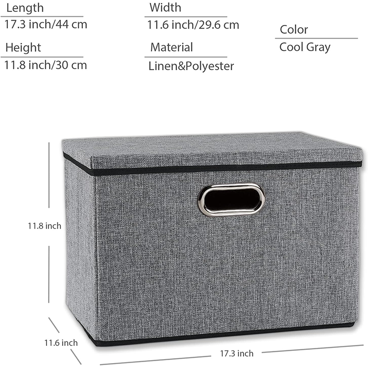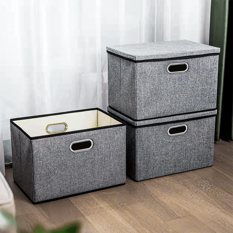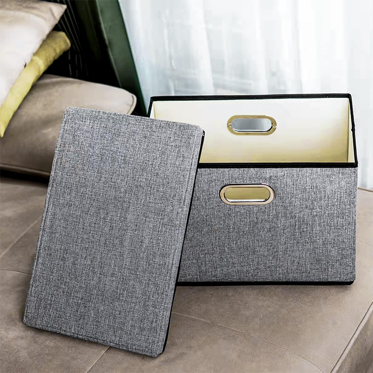 可定制聚酯亚麻可折叠收纳盒带盖可重复使用衣柜收纳器