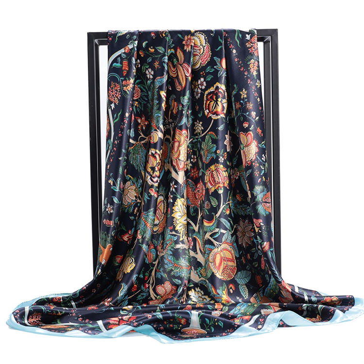 Custom Brand Design Hijab Bandana Digital Print 100% Silk Scarf Satin