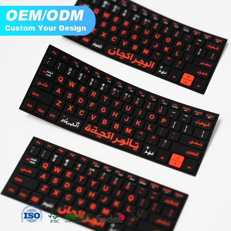 Pegatinas de teclado de PVC impresas en varios idiomas, pegatinas de teclado de vinilo troqueladas impermeables