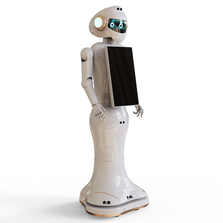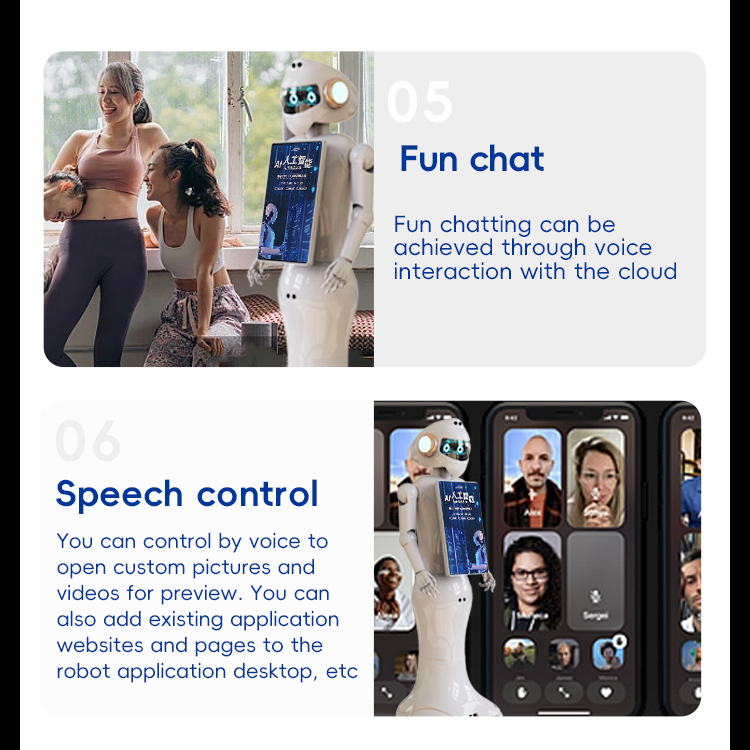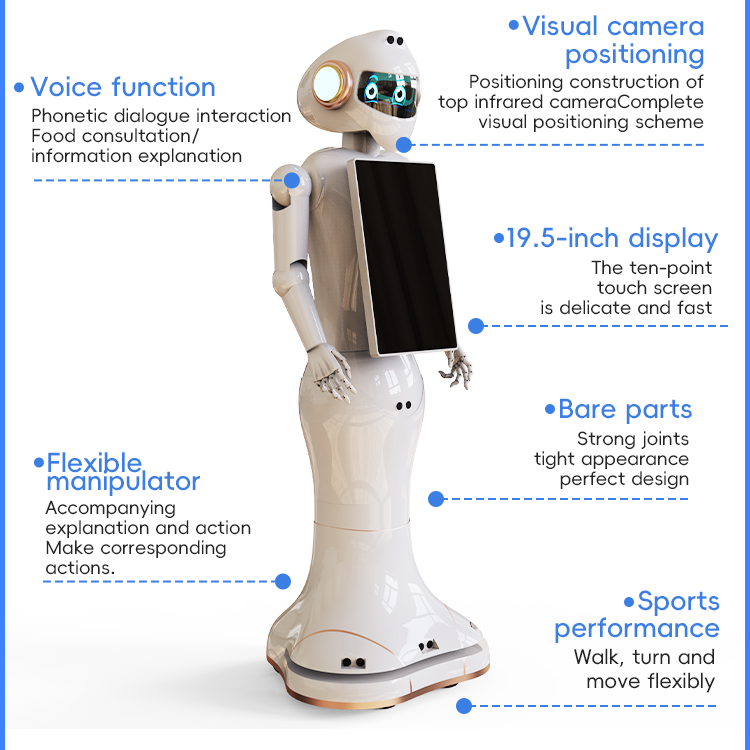 Showroom rehberli turlar için çift ekran AI insansı resepsiyon robotu en iyi ticari karşılama robotu