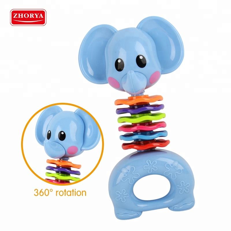 Diseño durable y seguro: Nuestro elefante Zhorya gira 360 grados de sonido elefante animal mordedor bebé juguete sonajero está hecho de plástico ABS de alta calidad, lo que garantiza la durabilidad y la seguridad de su pequeño. Cumple con las certificaciones EN71, ASTM y HR4040 para mayor tranquilidad.