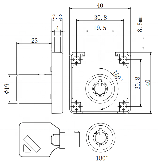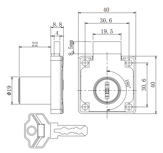 Cerradura tubular del cajón de la llave