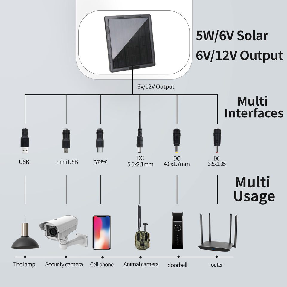 Solar Panel Battery Charger for Trail Hunting Game Camera 12v 9v 6v 5W Built-in 10000mAh Battery USB DC5521 Plug Waterproof