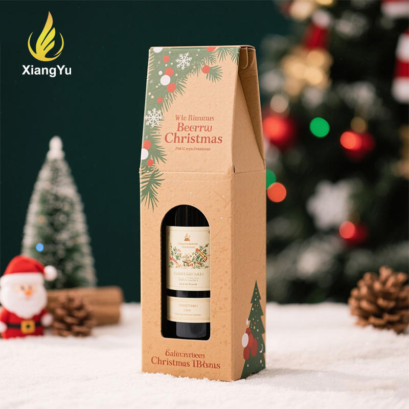 Cajas de Cartón para Vino con Impresión de Logotipo Personalizado de Fábrica, Caja de Cartón Corrugado para una Sola Botella de Cerveza, Caja de Regalo de Navidad