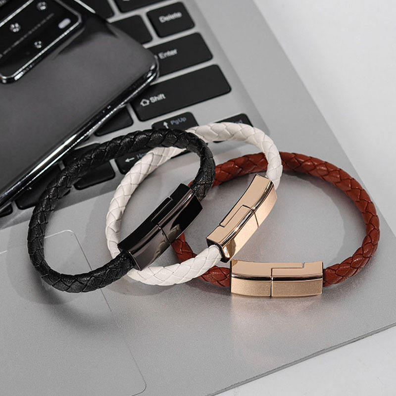 Venta directa de fábrica pulsera cable de datos tipo C pulsera novedosa tipo cable de datos cable de carga de cuero portátil