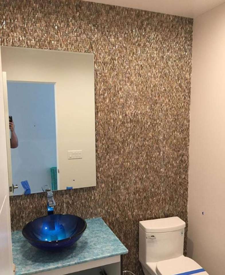 手工制作的3D珍珠母贝壳马赛克天然石材装饰瓷砖浴室厨房或酒店内墙