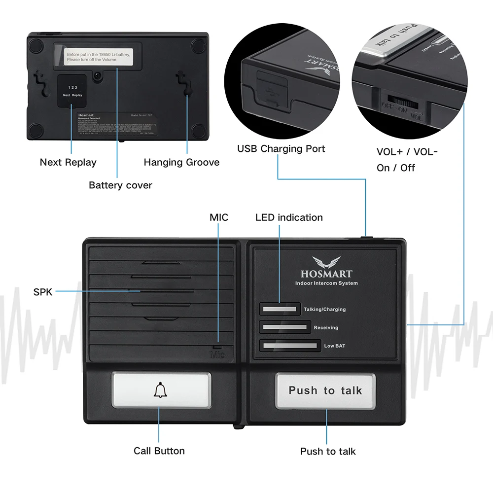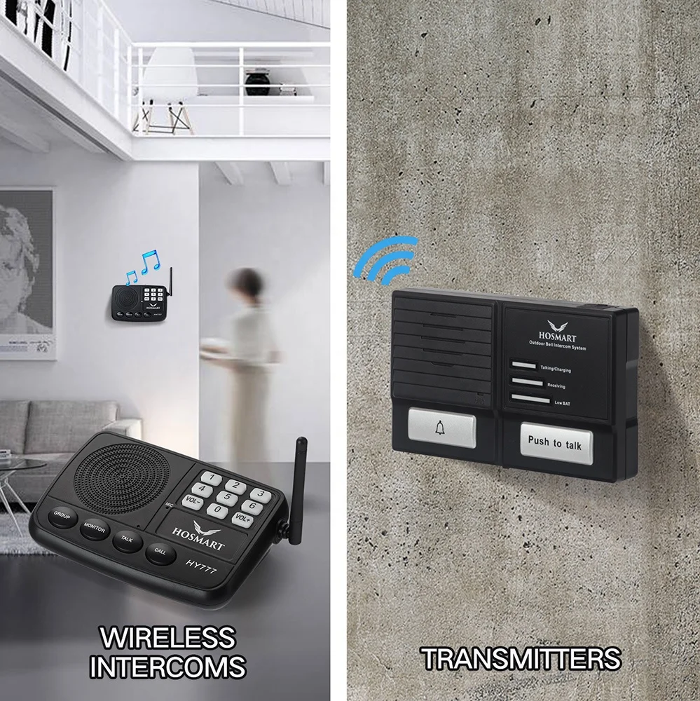 Thank you for your questions, you can search :Hosmart 1500FT Wireless 7-Channel Digital FM Wireless Intercom with Outdoor Doorbell Intercom system (include 18650 battery)