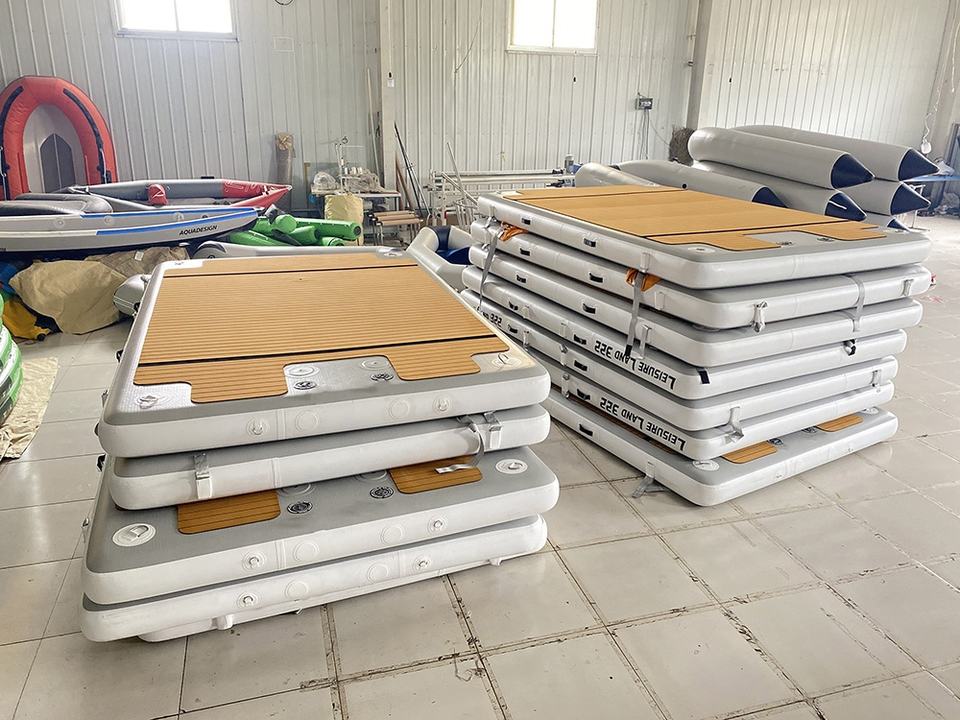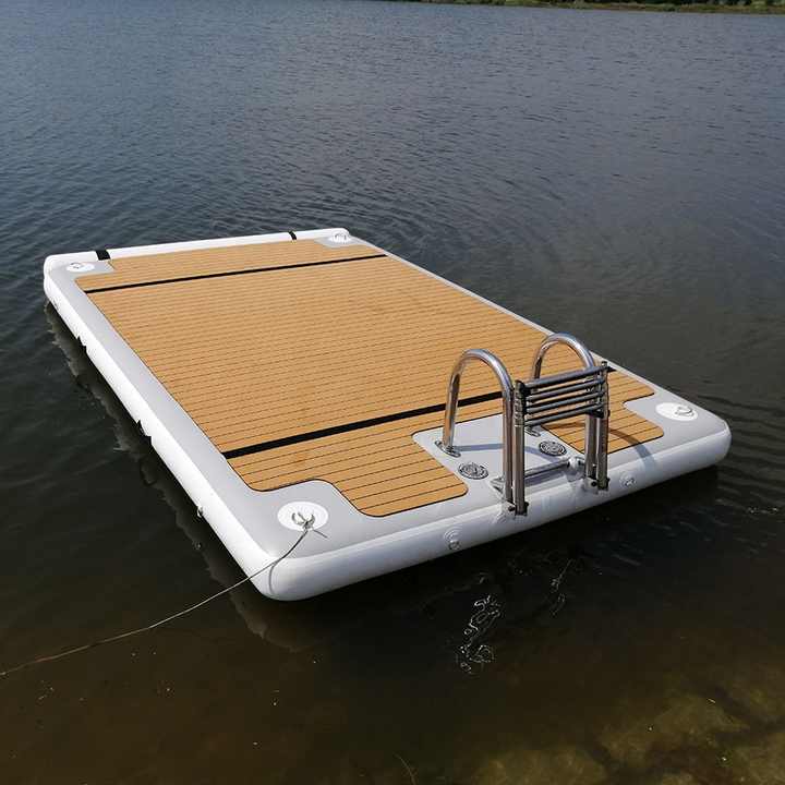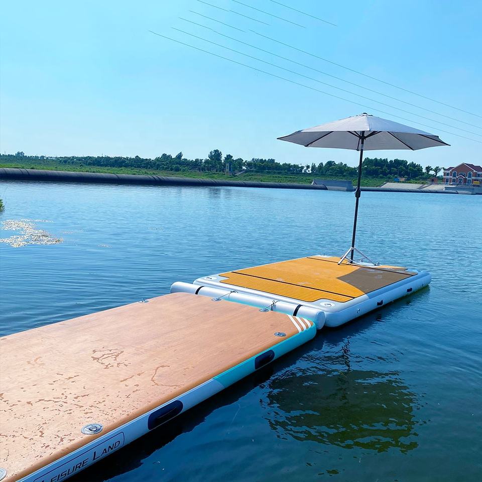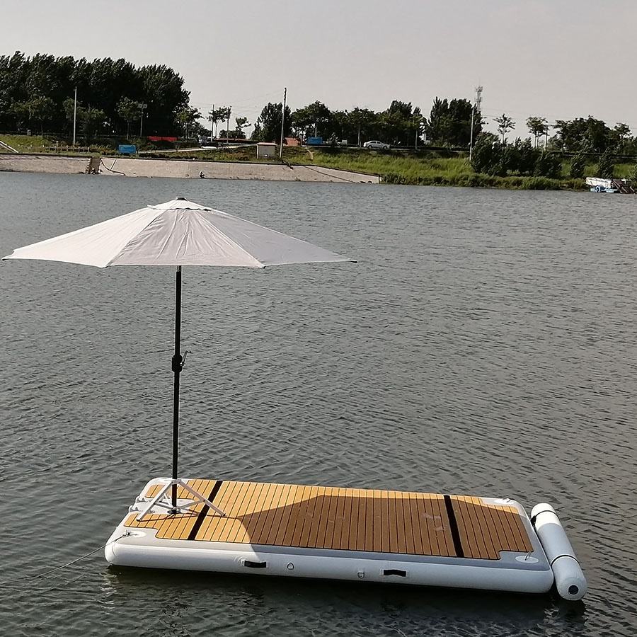Inflable isla flotante inflable pontón usando en el mar