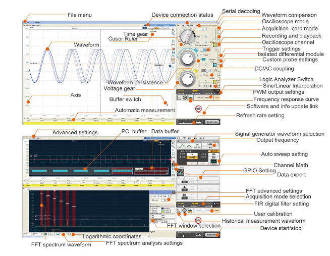 LOTO OSC482X, Oscilloscope+Signal Generator+Logic Analyzer+Data Logger, 4 in 1. 20MHz Bandwidth, 50MS/s Sampling, for Engineers