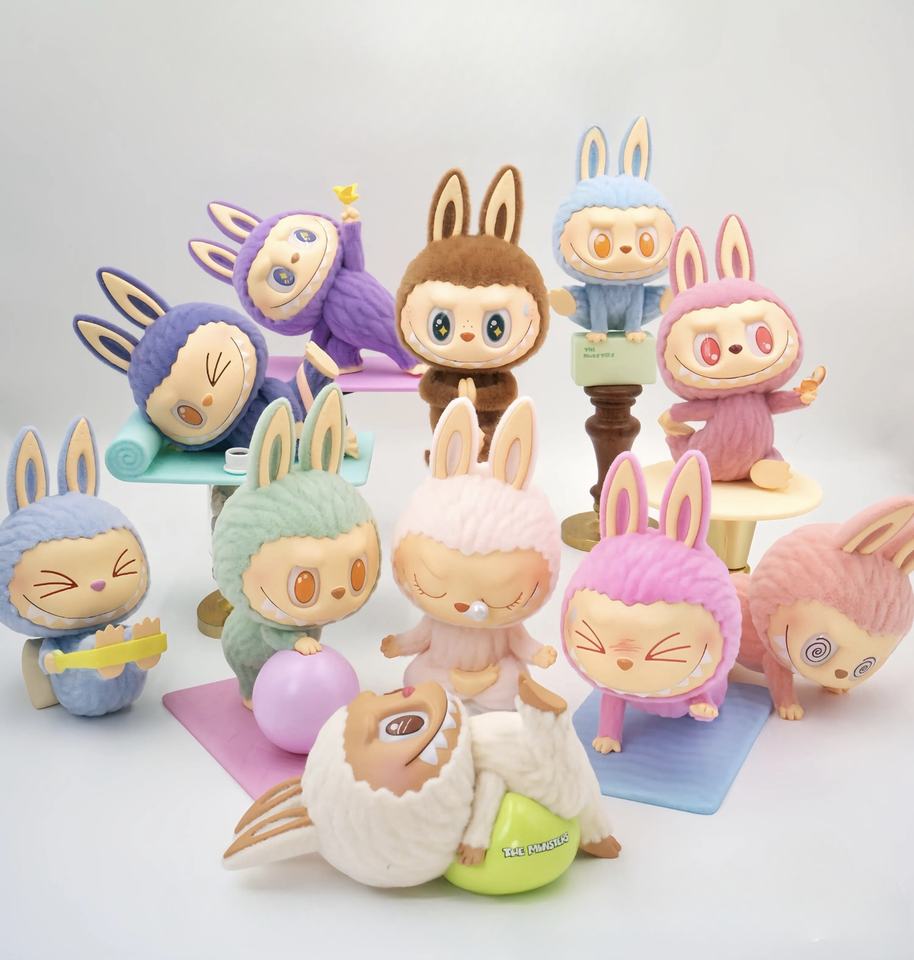 Tùy chỉnh dễ thương phim hoạt hình hợp thời trang búp bê hộp bí ẩn đảm bảo xác thực labubu popmart The Monsters Lazy Yoga Series Hành động Hình
