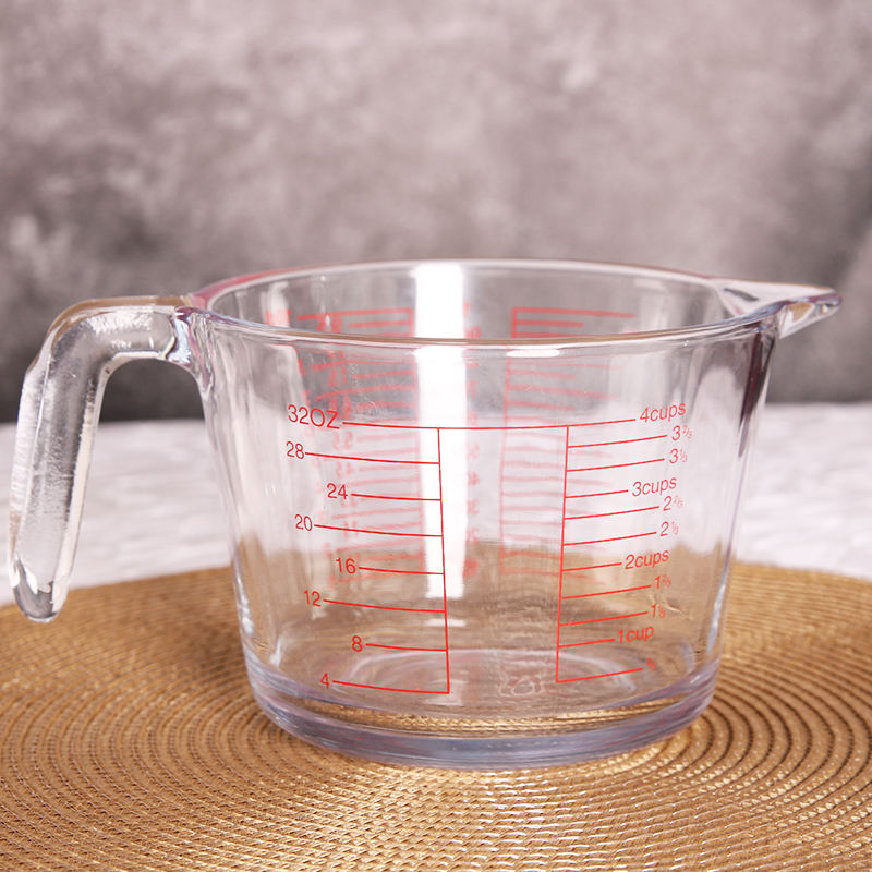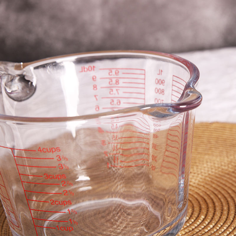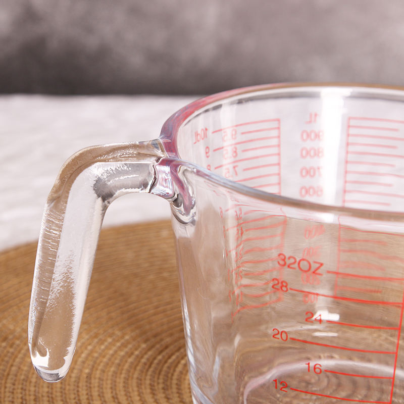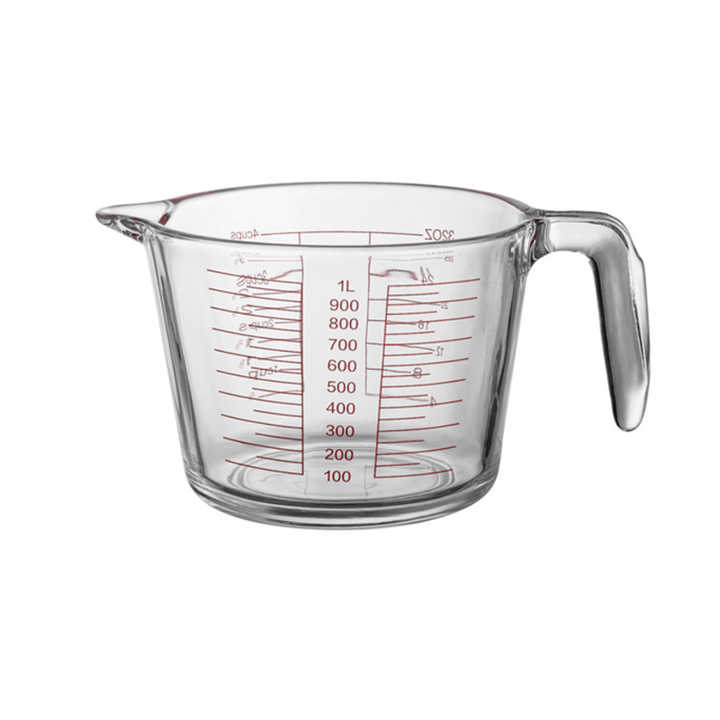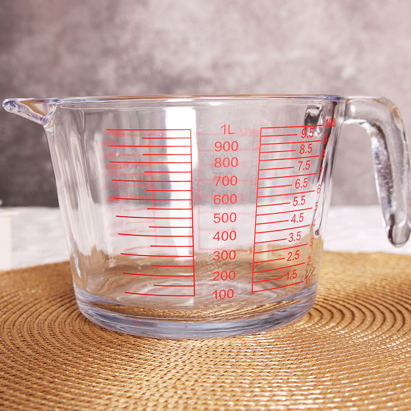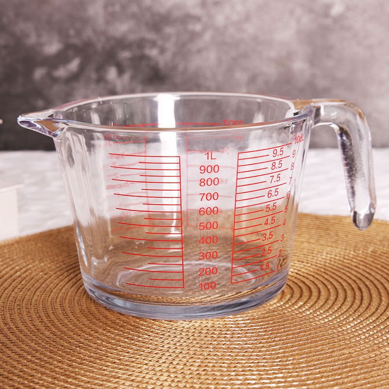 Gelas pengukur suhu besar 1L, alat dapur untuk rumah tangga dengan pegangan bertingkat tahan suhu tinggi