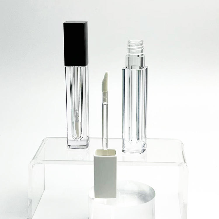 Tubo de Color de labios de gran capacidad de 4,5 ml, embalaje cosmético PET transparente cuadrado con tapa blanca para Blush Eye Black Glaze