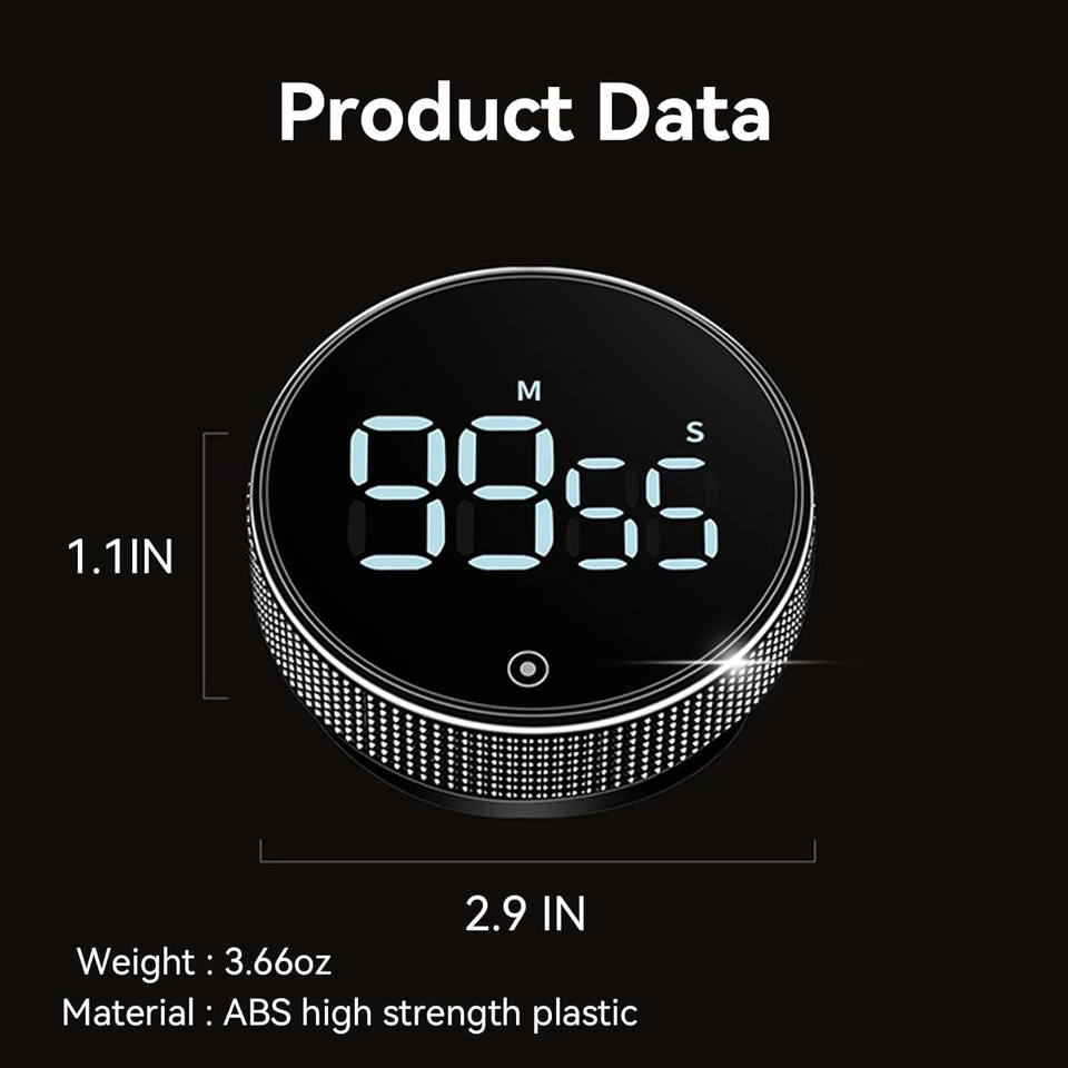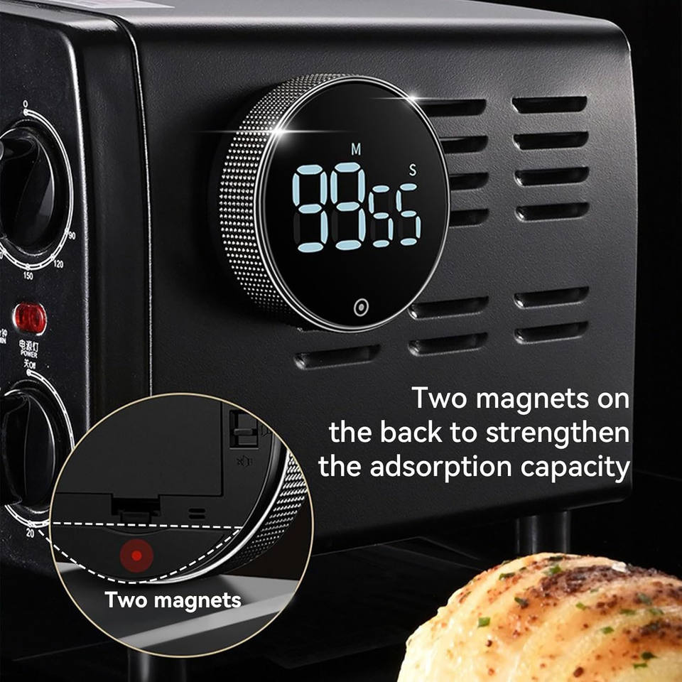 대형 LED 디스플레이 회전 카운트 다운 마그네틱 요리 타이머 라운드 블랙 디지털 주방 타이머