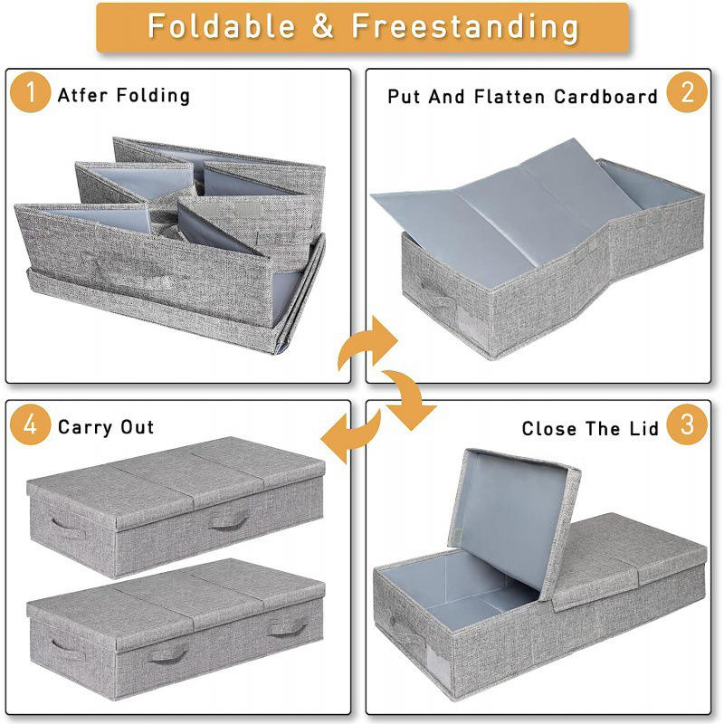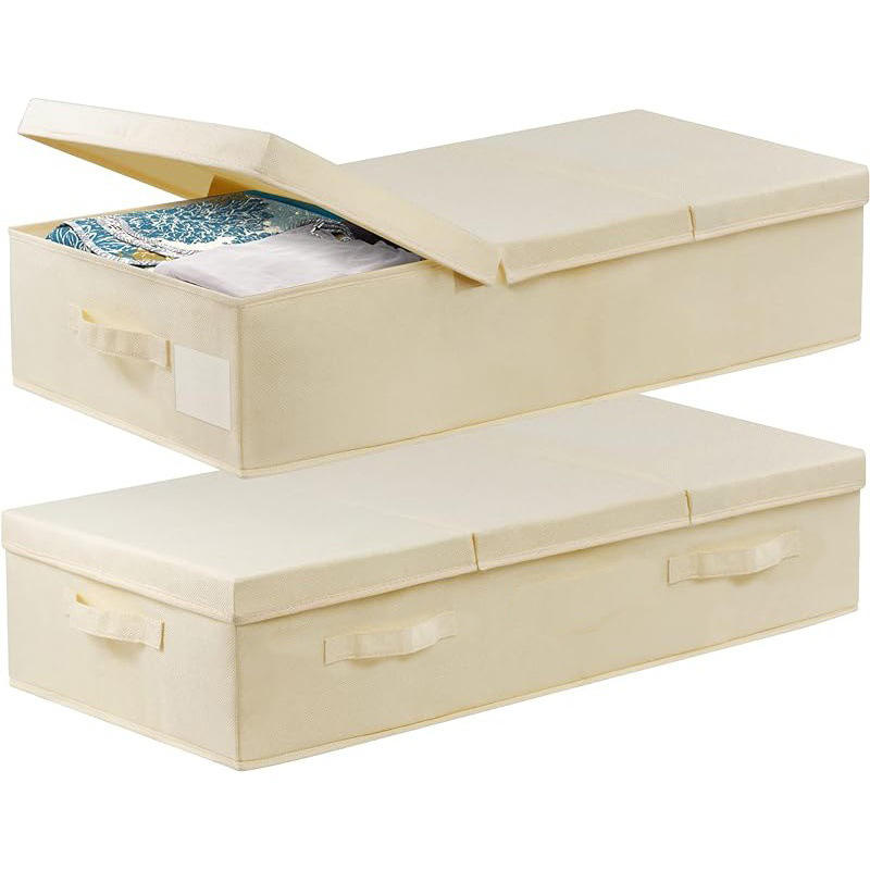 Grandes contenedores de almacenamiento debajo de la cama con tapas de tela plegable apilable cajón organizador contenedores debajo de la cama caja de almacenamiento
