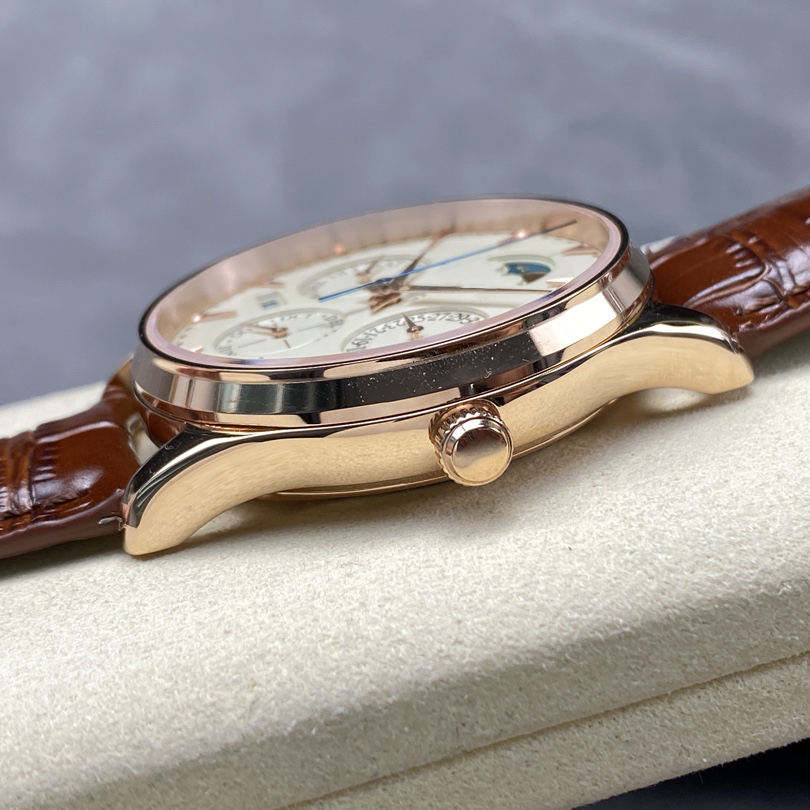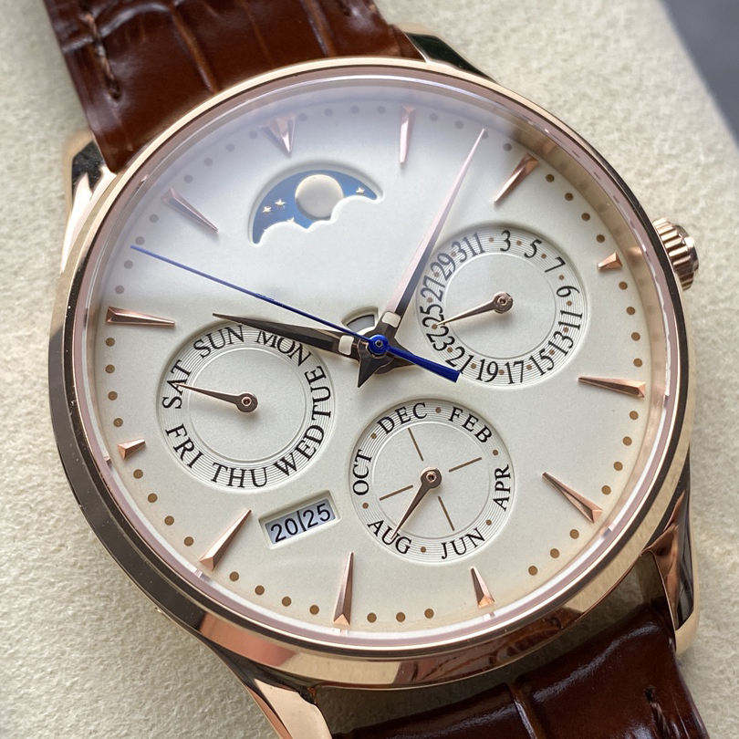 Reloj mecánico de edición limitada, calendario perpetuo, caja de oro rosa, esfera de 39mm para ropa informal de negocios, función de buzo, corona de cristal