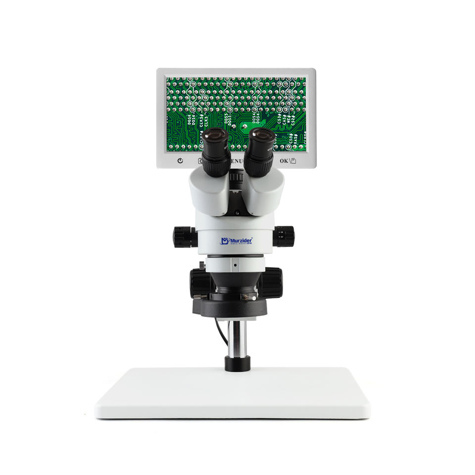 Microscopio estéreo trinocular de base grande Lectronique con pantalla de 9 pulgadas, microscopio con pantalla de 1/2 pulgadas