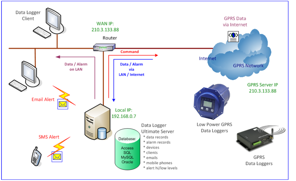 Communicatie:Gprs, sms, ethernet