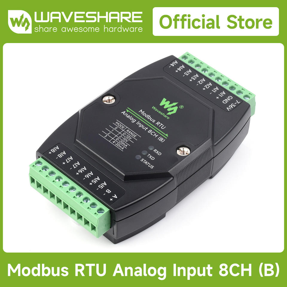 Modbus RTU Analog Input 8CH (B) Waveshare Industrial Modbus RTU 12-bit High-precision Supports Voltage and Current Acquisition