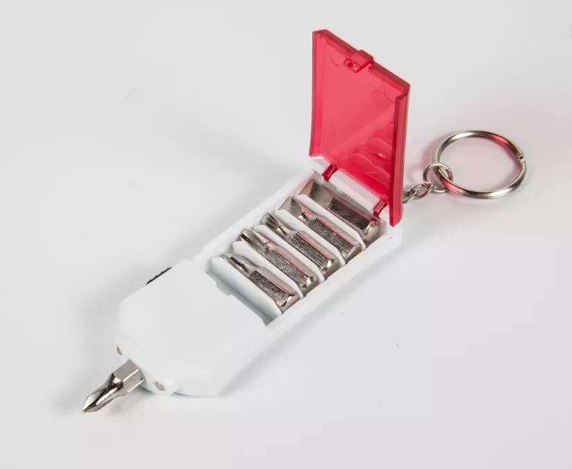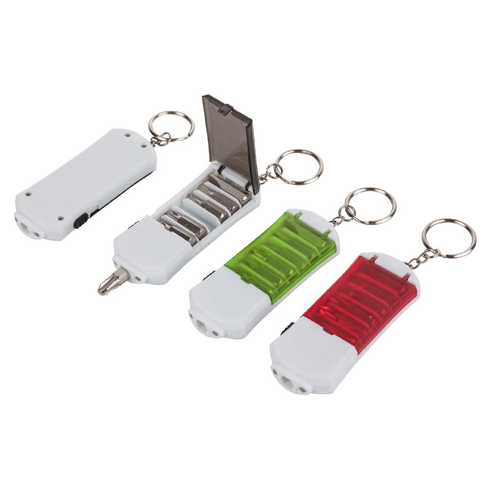Beyaz kutu, çok fonksiyonlu plastik Led anahtarlık ışık, 2 Led satış promation ışık anahtarlık, Mini Led el feneri anahtarlık ve tornavida araçları