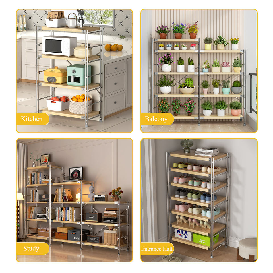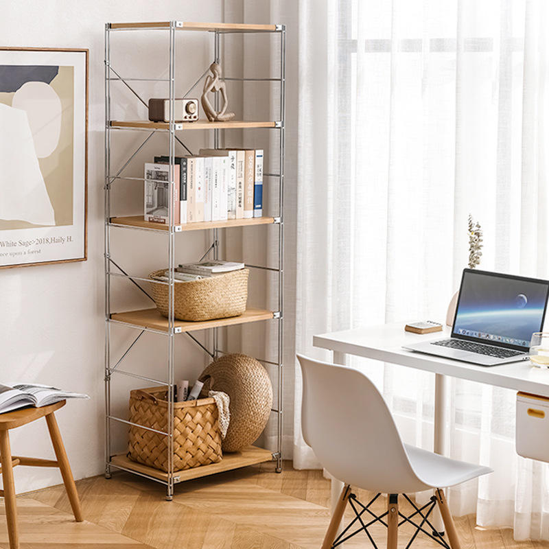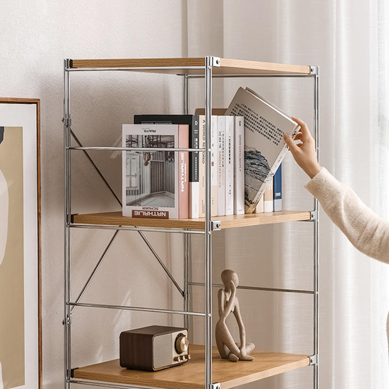 आधुनिक घरों के लिए स्टील फ्रेम के साथ बहु-परत लकड़ी का भंडारण शेल्फ