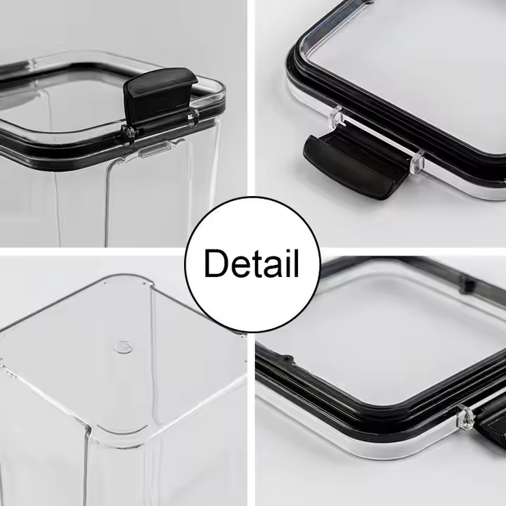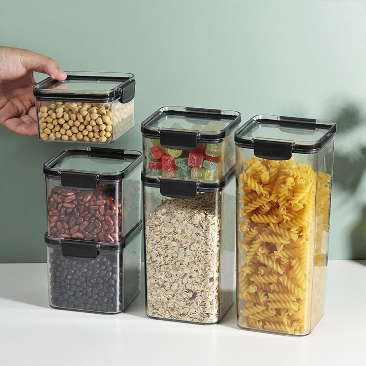 Wadah penyimpanan plastik multifungsi, wadah penyimpanan makanan kering, kaleng penyimpanan makanan kedap udara bening untuk dapur