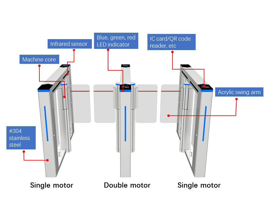 Kontrol Akses Keluaran Baru Kecepatan Cepat Sistem Otomatis Gerbang Pembatas Pintu Putar dengan Pengaturan Khusus