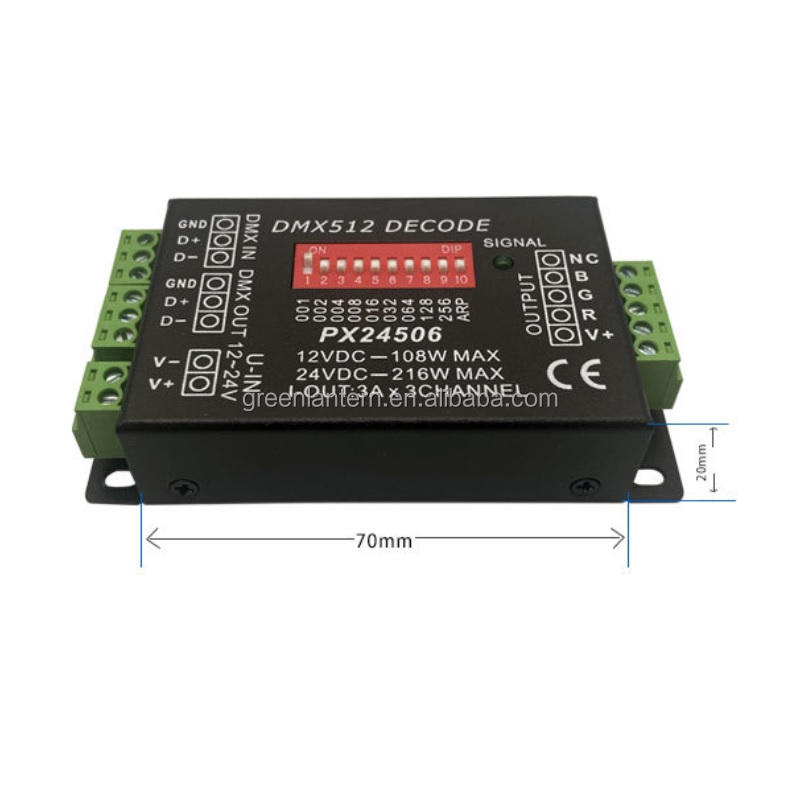 Nuevo controlador decodificador DMX512, módulo LED colorido RGB, luz de escenario, controlador de subcontrol DMX, PX24506, DC12-24V