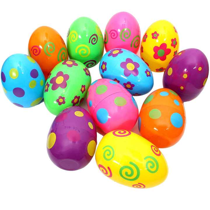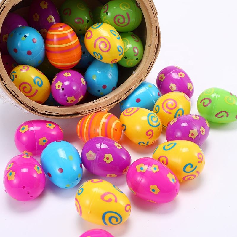 Huevos de Pascua de plástico vacíos impresos multifuncionales de nuevo diseño, huevos de Pascua de plástico rellenables para rellenar golosinas y recuerdos de fiesta