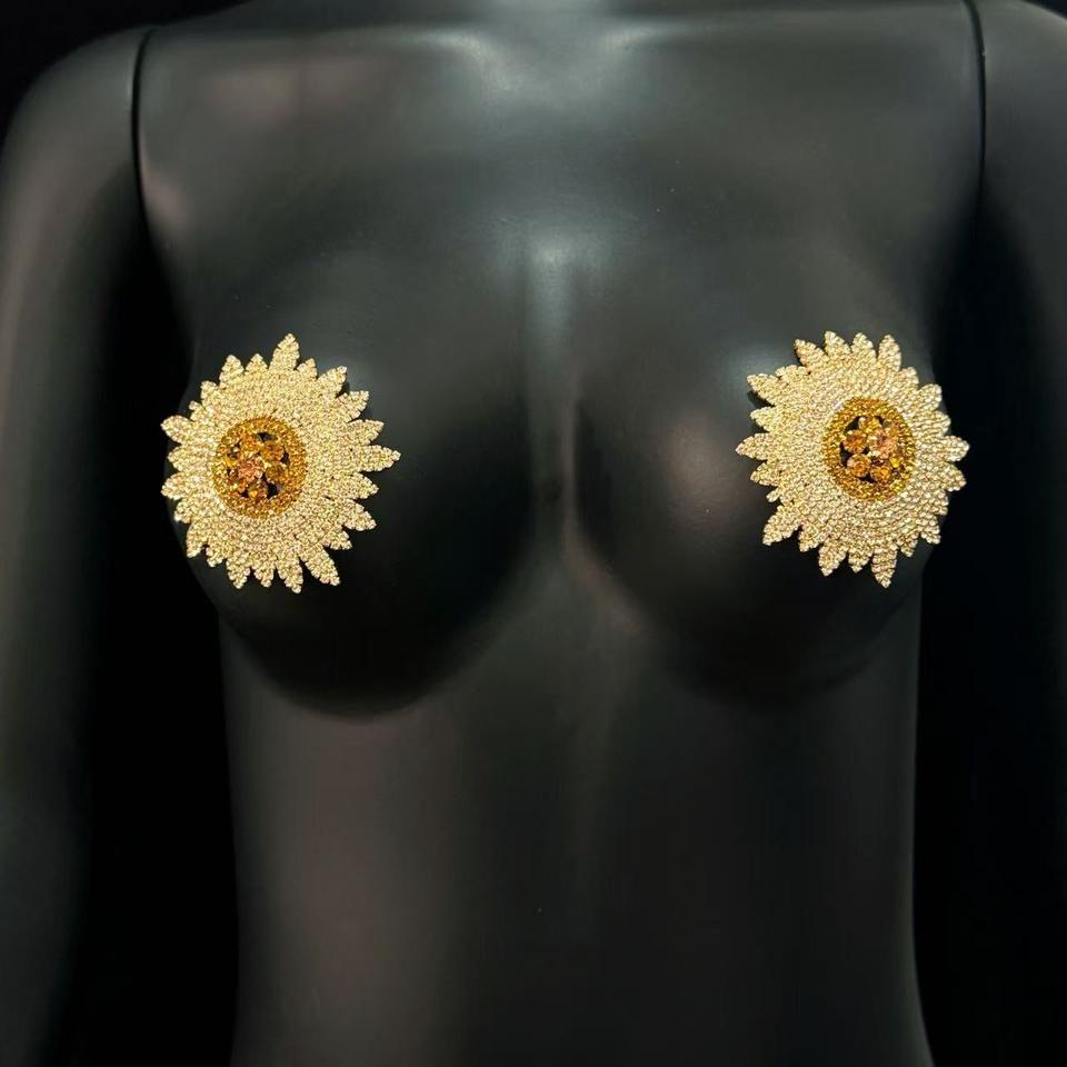 ห่วงโซ่สำหรับผู้หญิงใหม่พร้อมแผ่นแปะหน้าอกคริสตัลดีไซน์ดอกทานตะวันสุดเซ็กซี่เครื่องประดับแฟชั่น