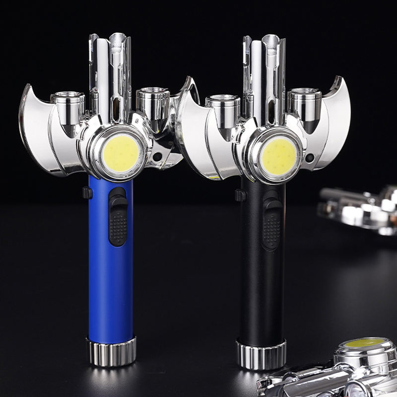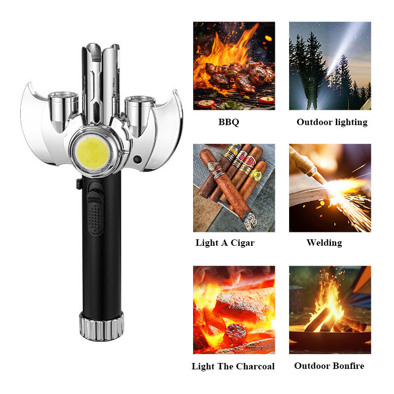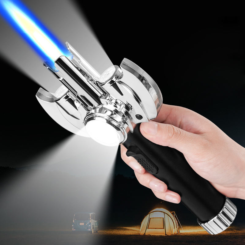 Nuevo a prueba de viento inflable multifunción giratorio barbacoa lanzallamas Metal azul llama antorcha encendedor para regalos de cigarros