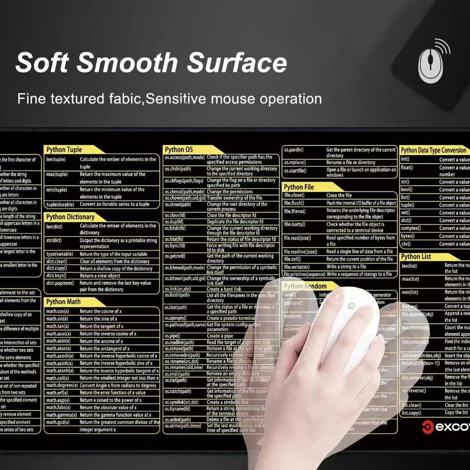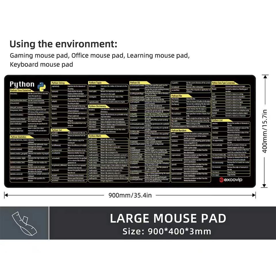 Più recente Python Excel Word Desk Mat tastiera scorciatoia Mouse Pad XL,XXL gomma Extended in gomma antiscivolo personalizzato per il Mouse Pad Desktop