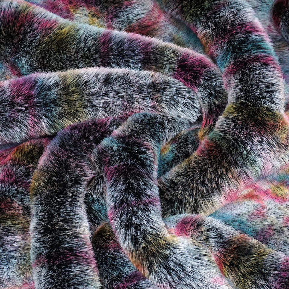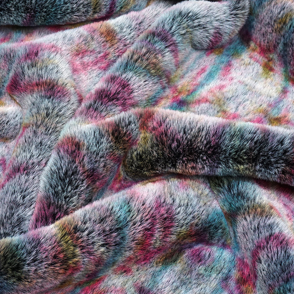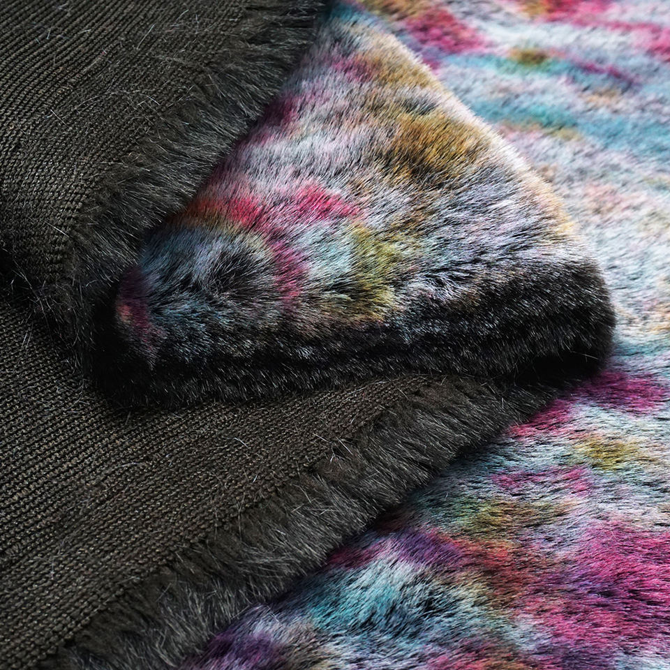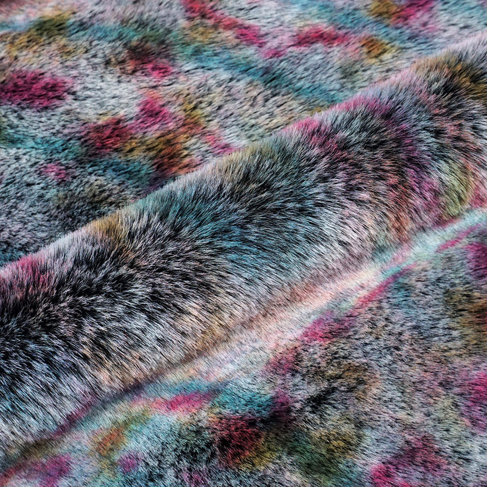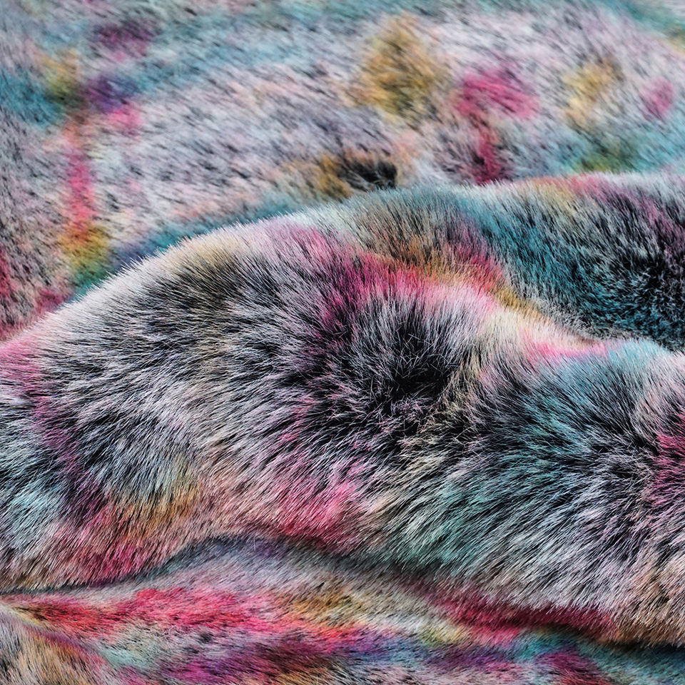 Printed Artificial Rainbow Soft Shaggy Plush Luxury Curly Yak Long Pile Faux Fur Fabric