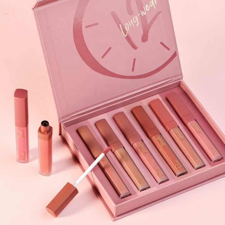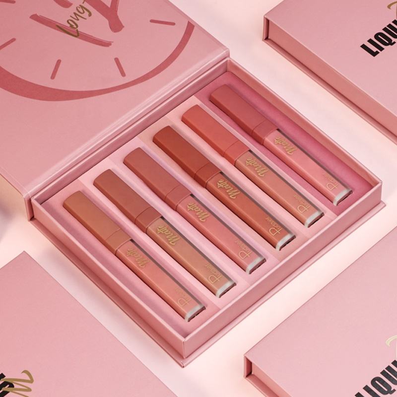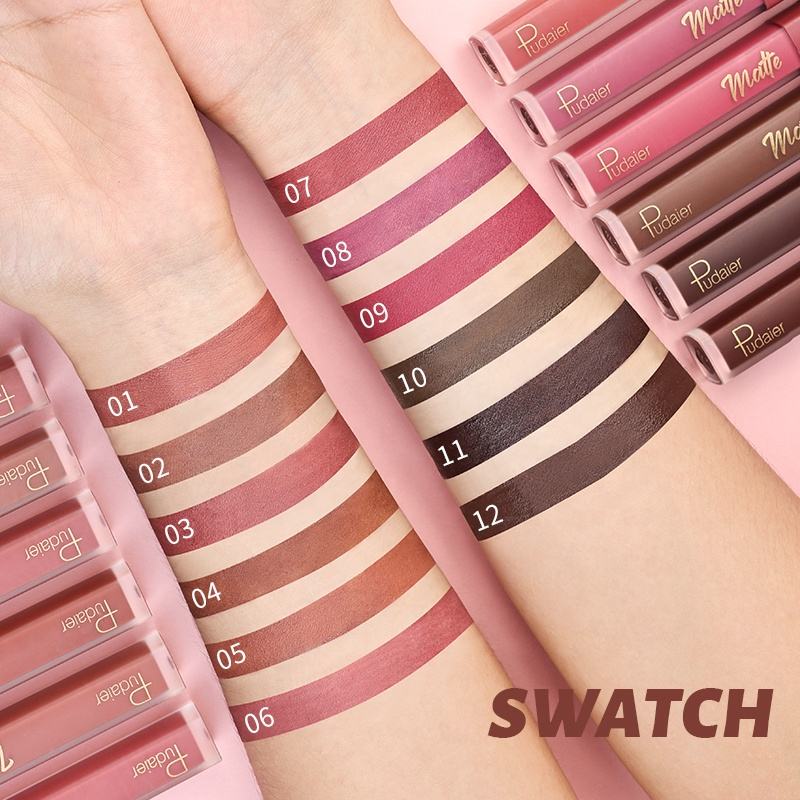 Pudaier conjunto de batom líquido fosco à prova d'água para maquiagem labial conjunto de brilho labial hidratante de 6 cores com acabamento fosco cosméticos personalizados veganos