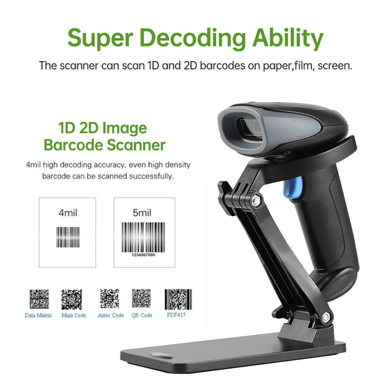 क्यूआर कोड स्कैनर हैंडहेल्ड वायरलेस बारकोड स्कैनर 2डी यूएसबी क्यूआर स्कैन गन पोर्टेबल एंड्रॉइड बारकोड रीडर स्टोर मोबाइल भुगतान के लिए