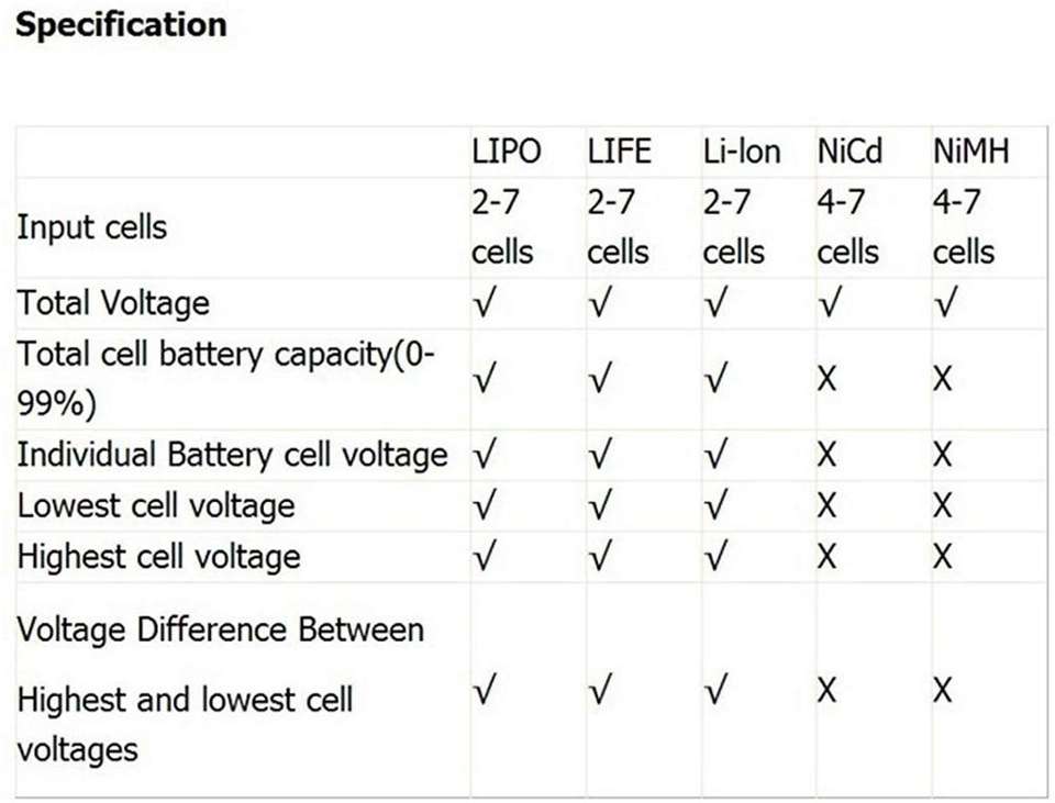 Probador de capacidad digital RC, controlador de batería de radiocontrol LCD para LiPo LiFe Li-ion NiMH Nicd para aficionados
