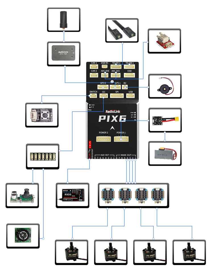 RadioLink PIX6 pengendali penerbangan sumber terbuka, modul OSD bawaan FC 16 saluran Output, kompatibel dengan ArduPilot untuk Drone
