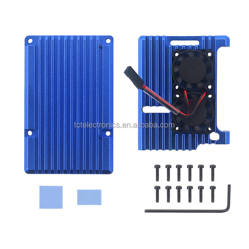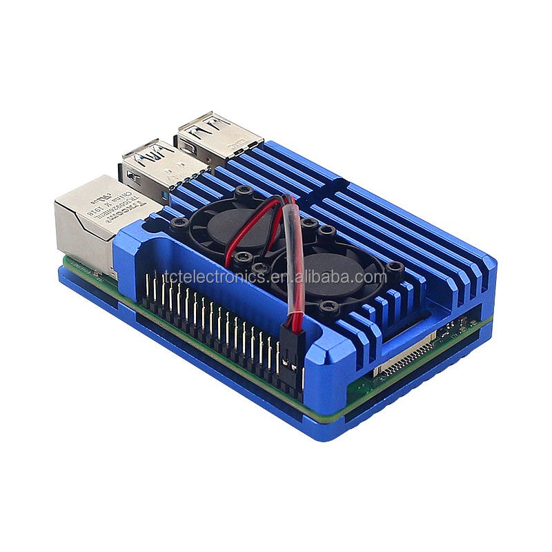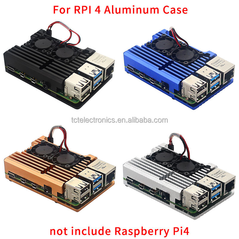 Carcasa protectora para Raspberry Pi 4 modelo B, carcasa protectora de aleación de aluminio con refrigeración Dual, Mini ventiladores