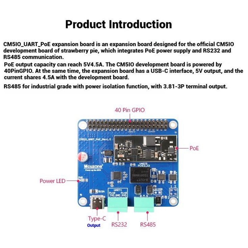 Nom du produit:Carte Raspberry Pi CM5IO UART-PoE