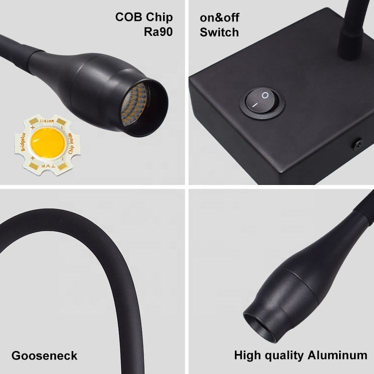 Lampu baca LED desain persegi panjang, sudut aluminium, lampu dinding anti-silau untuk penggunaan dalam ruangan kamar tidur