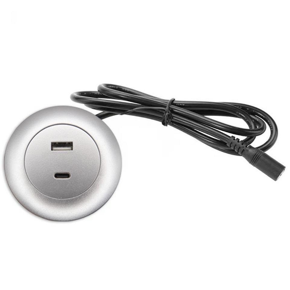 Rodada Embedded USB-A USB-C Carregamento Porto Móveis Tomada tira De Energia Para Sofás Desk Bed bar USB-C tomada carregador tomada