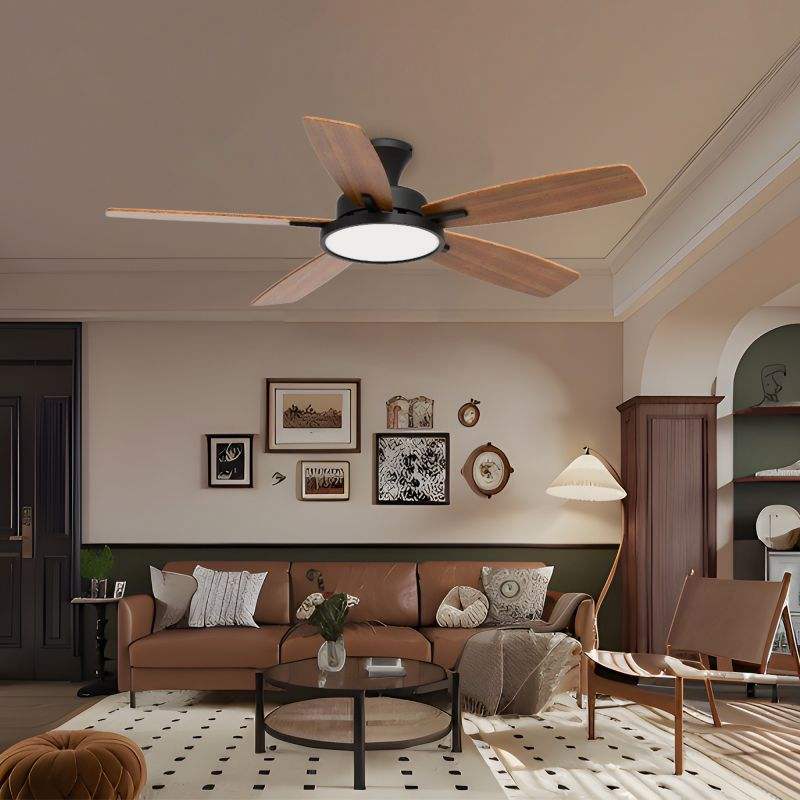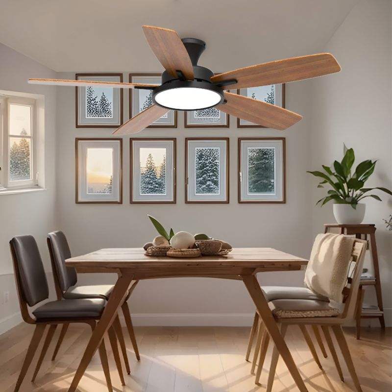 Ventiladores de techo LED modernos rústicos con cuerpo de madera maciza, lámpara eléctrica para el hogar para sala de estar, lámpara de madera negra con Control remoto
