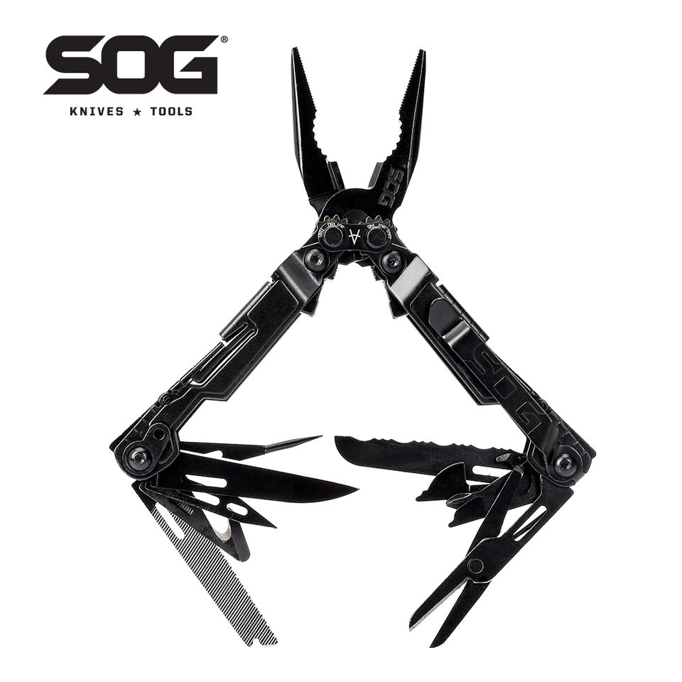 SOG PowerPint Mini Compact 18-Tool Herramienta multifunción de acero inoxidable Pala de supervivencia plegable para uso diario ()