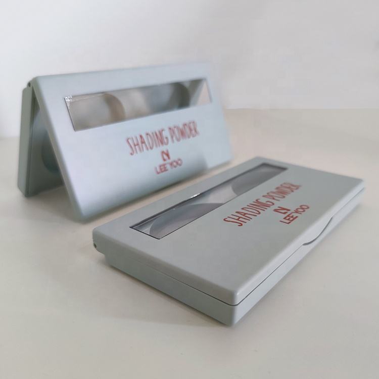 Shaking powder case Duo corrector caja de polvo compacta con espejo rubor caja de polvo con ventana embalaje de cosméticos de plástico