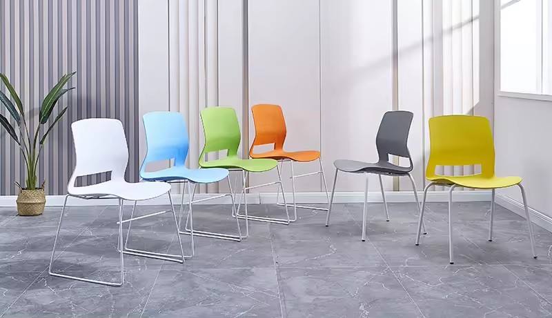 Silla de oficina apilable con marco de metal de diseño simple Silla de invitados para sala de conferencias de entrenamiento de plástico para visitantes
