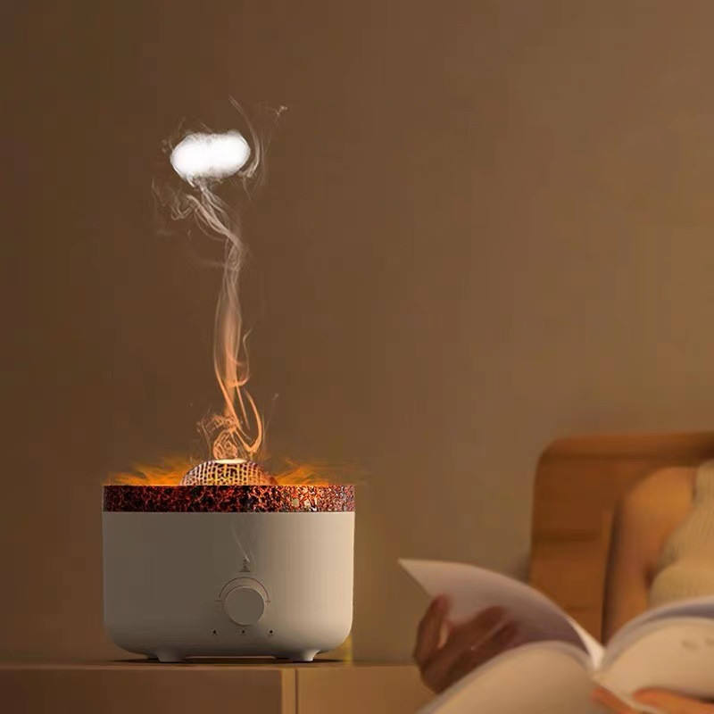 Umidificador de fogo simulado para quarto, máquina de aromaterapia com anel de fumaça e névoa, máquina de água-viva USB silenciosa